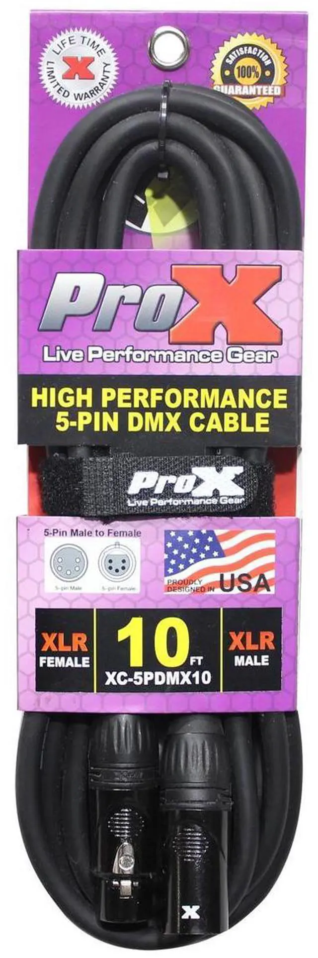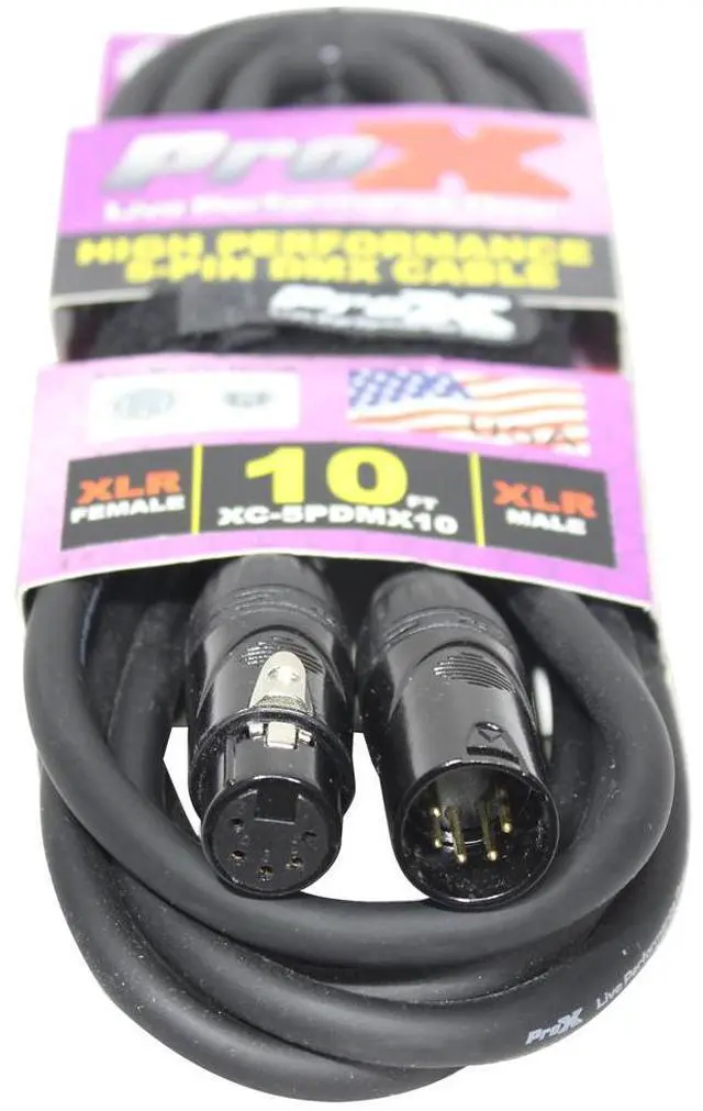 The strongProX XC-5PDMX10strongcable is ideal for DMX connection applications where a device with a male DMX XLR-5 outputinput needs to be connected to a device with a female DMX XLR-5 outputinput. 22AWG Oxygen-Free Copper (OFC) conductors for maximum signal transfer.We know cables are not just cables, they are what protects your signalfrom being altered. Uncompromised signal power, with precisedatatransmission,is paramount for quality DMX control operations. OurDuoFoil and braided OFC Copper Compact shield blocksnoise and protects data transfer.br br Bending &Twisting, are no match for our high-performance tour-grade DMX cables. They're designed to provide years of dependable service and outlast every other cable on the market! Complete Coil technology demands consistent weave tolerances to create precise and accurate data transmission. This is the most important part of the design and greatly affects performance.strongemNOTE: Twisted pair DMX data transmission cables are not suitable