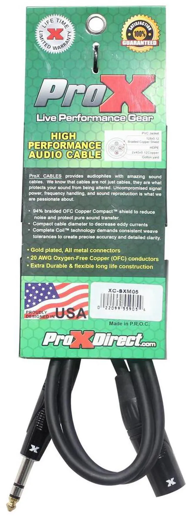 The ProX XC-SXM05 is ideal for professional touring and live sound applications where a device with a balanced 1/4" output/input needs to be connected to a device with a balanced XLR-M connector. 20AWG Oxygen-Free Copper (OFC) conductors for maximum signal transfer. ProX cables are built with uncompromised quality with excellent performance at each connection - Instrument cables, Speaker cables, RCA cables, DMX cables, Power cables and more. Our cables are made for professionals, by professionals. 93% braided OFC Copper Compact shield to reduce noise and protect pure sound transfer. Compact cable diameter to decrease eddy currents.