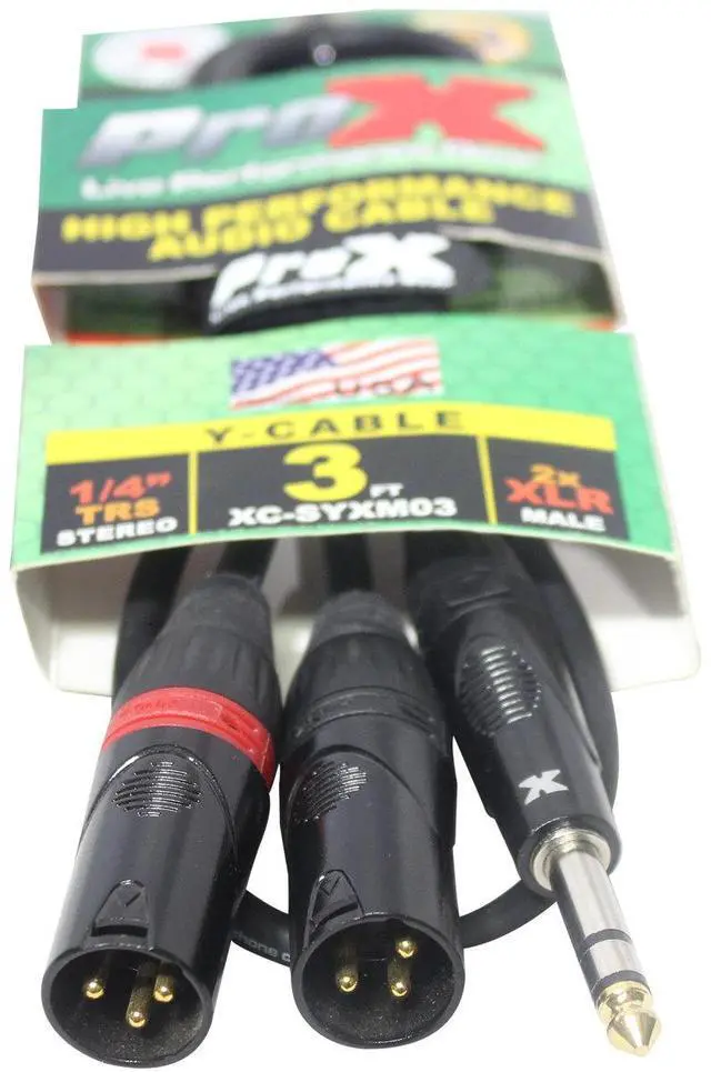 The ProX XC-SYXM03 is a 3 Ft. Splitter/Patch Cable going from 2 XLR3 Male Connectors to a Single TRS-M 1/4" Stereo Connector. ProX cables are built with uncompromised quality with excellent performance at each connection - Instrument cables, Speaker cables, RCA cables, DMX cables, Power cables and more. Our cables are made for professionals, by professionals. 93% braided OFC Copper Compact shield to reduce noise and protect pure sound transfer Compact cable diameter to decrease eddy currentsBending & Twisting are no match for our high-performance tour-grade audio cables. They're designed to provide years of dependable sound reproduction and outlast every other cable on the market! Complete Coil technology demands consistent weave tolerances to create precise accuracy and detailed clarity.