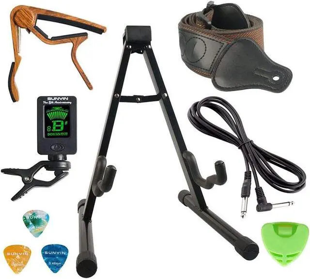 SUNYIN Guitar Stand Accesssories Kit, Bass Guitar Stand, 10-Feet Guitar Cord, Guitar Starp, Guitar Tuner, Guitar Capo, 3 Guitar Picks For Acoustic and Electric Guitar, Bass, Guitar Player Practical Gift