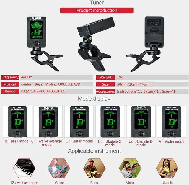 - Guitar Tuner - Highly accurate tuner with chromatic and guitar modes. Rotates 360°. Comes with batteries and ready to use