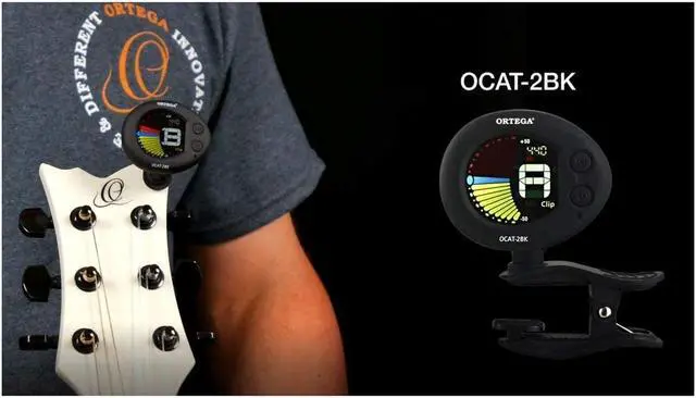 In a sleek black design, the Ortega Guitars Clip-On Headstock Tuner/Metronome is as stylish as it is functional. Whether you're a beginner or a seasoned professional, this device is a must-have addition to your musical toolkit.