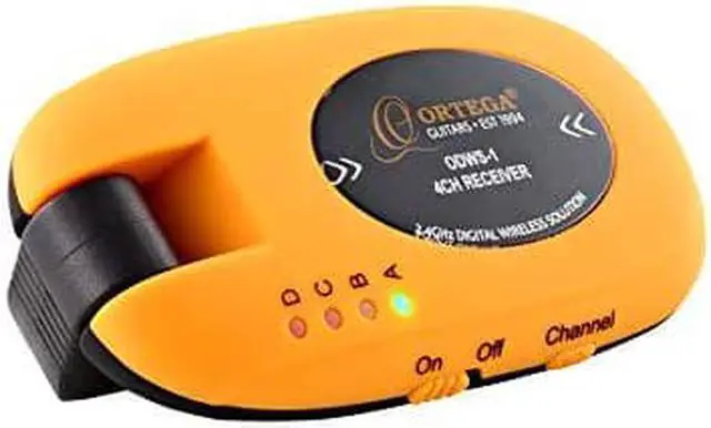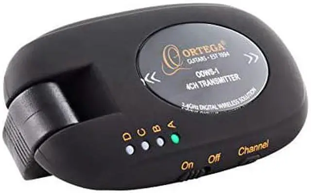 Product Description The Ortega Digital Wireless System features 2.4 Ghz digital technology and brodcasts incredible crystal-clear audio quality. Ready to use in seconds the system offers four operating channels (A, B, C, D), power/charge indicator and a rechargeable, built-in battery (+2500 charging cycles). The latency of <5 ms and a full range frequency coverage of 20 Hz 20 kHz secures great, detailed and real time sound. The ODWS supports most active & passive systems as well as acoustic piezo devices. From the Manufacturer Our newly designed accessories range offers top quality, attractive looks, maximum functionality and exceptional quality - all from one source, Ortega Guitars.