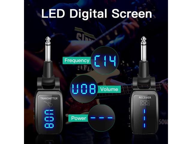 - Digital Display:As a great guitar accessories,the guitar wireless system with LED screen which can clearly display frequency, volume and power.Very easy to use,plug and play.