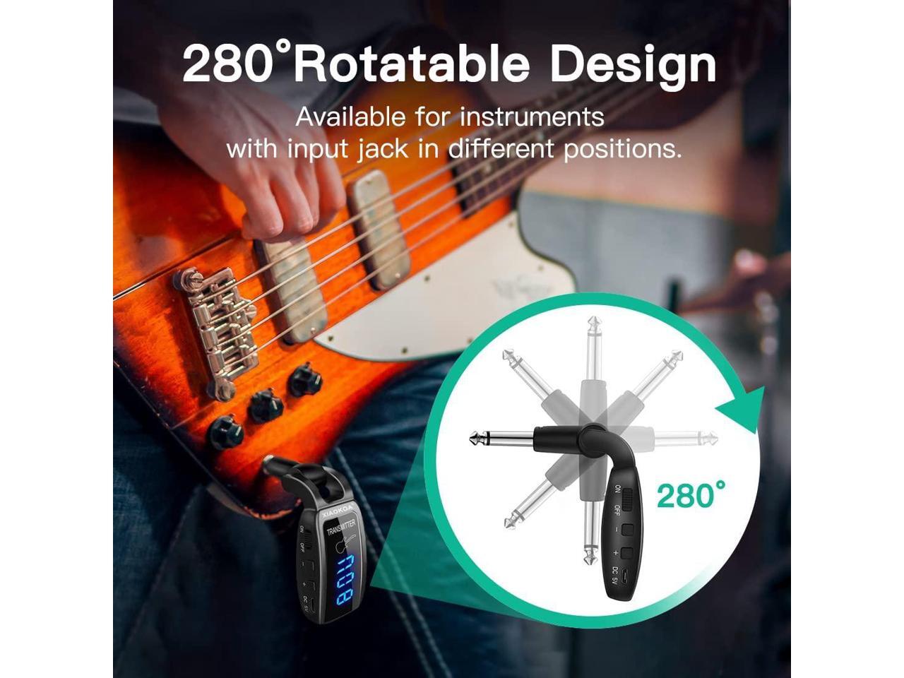 - Widespread Use:280°rotatable plug design, available for most electric music instruments, electric guitar, bass and other musical instruments with pickup.We also offer 3.5mm adapter (included)for receiver to connect more Amplifier Equipments.