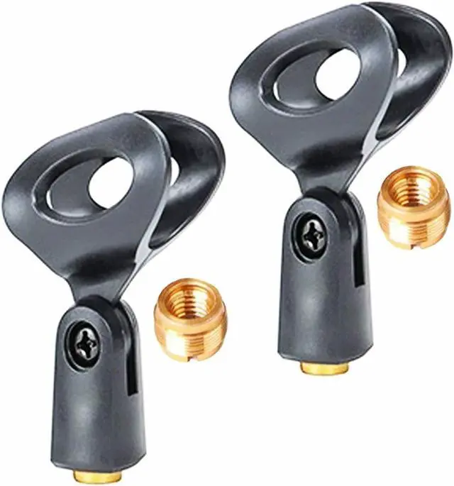 Nut Adapters with 5/8" Male to 3/8" Female Adapter. the female screw thread of microphone clip and the standard 3/8 -inch female to 5/8-inch male screw adapter are golden; made of metal; better than plastic