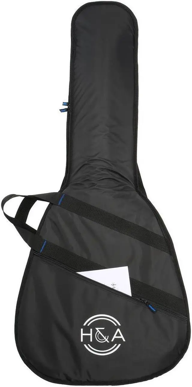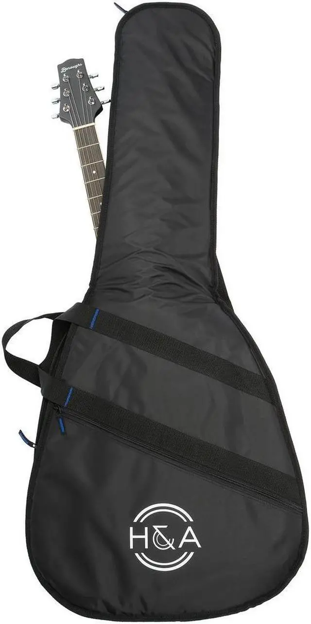 When not in use, this gig bag serves as a protective shield, reducing dust accumulation on your guitar's finish. Moreover, the H&A Gig Bag is not just about protection and portability. It also offers a spacious front accessory pocket, providing ample space to store your essential guitar accessories like picks, tuner, strings, or sheet music. This ensures you'll always have everything you need at your fingertips, making your musical experience seamless and enjoyable. In essence, the H&A Gig Bag for Dreadnought Acoustic Guitars combines style, durability, and functionality, making it an indispensable accessory for every passionate guitarist.