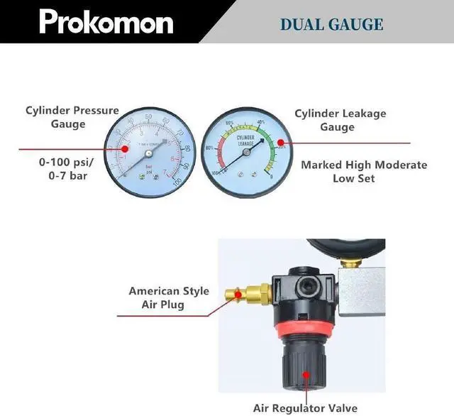 Gauge: Manifold assembly with 18 inch hose, AR2000 pressure regulating valve, American type air plug and manifold body. Valve knob is used for pressure adjustment of the inputed air from the air compressor. Pull out for use, and push back to lock
