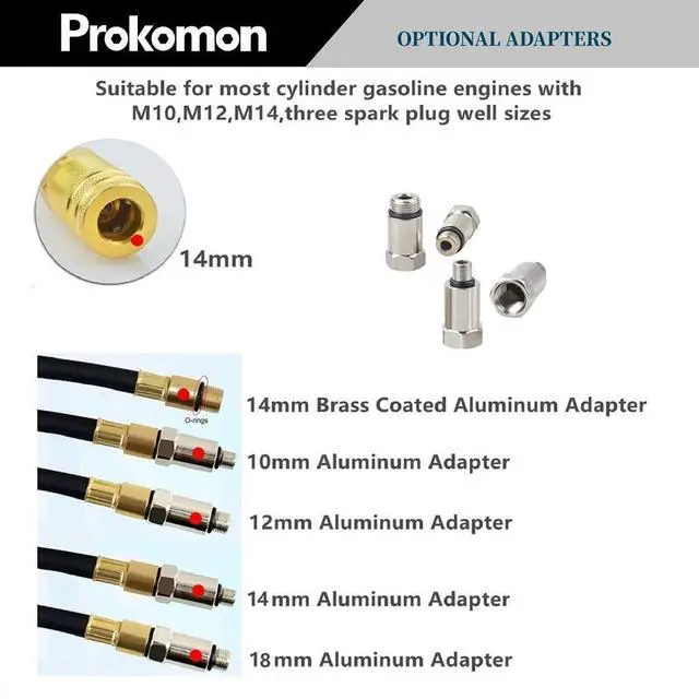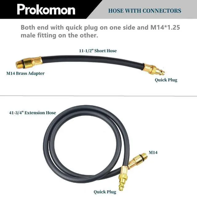 Accessories: Straight and angled type universal push-on connectors don't need to be threaded into spark plug wells and applicable to almost all petrol engines, and M14 aluminum extension rod can be installed on long or short hose(41-3/4"; 11-1/2") end
