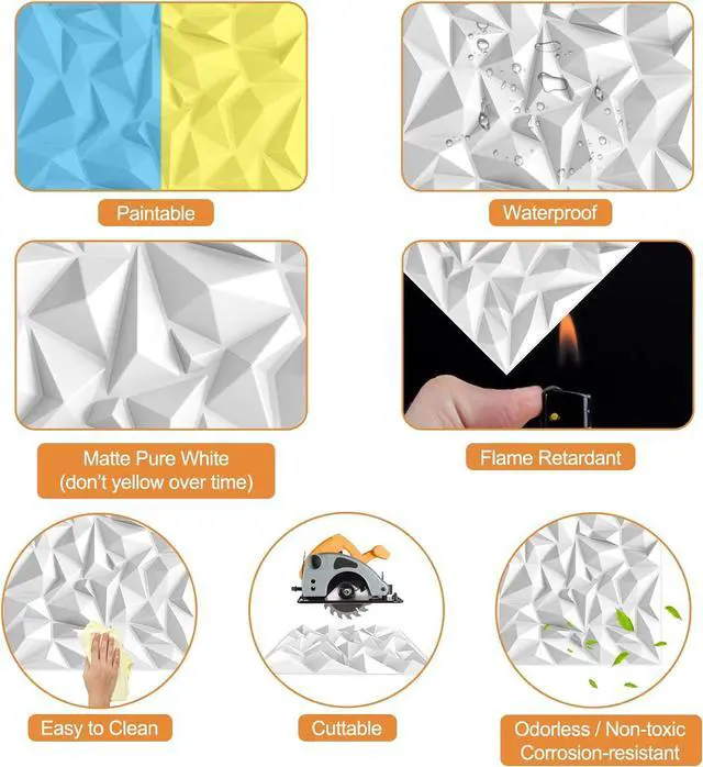 MODERN 3D DESIGN & PREMIUM QUALITY: These textured wall tiles blend contemporary geometric aesthetics with durability. They are available in matte white or black and dont yellow over time. They are odorless, non-toxic, corrosion-resistant, anti-aging, and waterproof