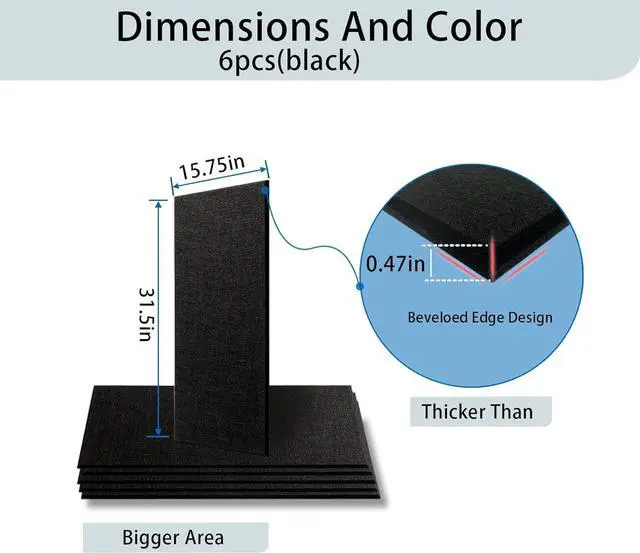 IMPROVED ACOUSTIC QUALITYLarge size and High-density acoustic panels sound absorbing can easily and effectively reduce reverberation diffusion and echo, absorb noise for the wall. Effectively improve your sound environment and sound quality.