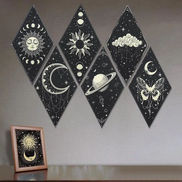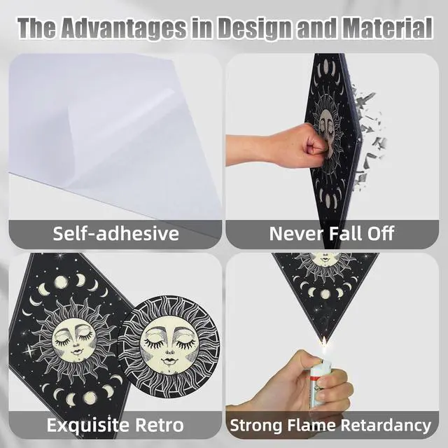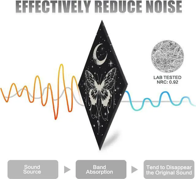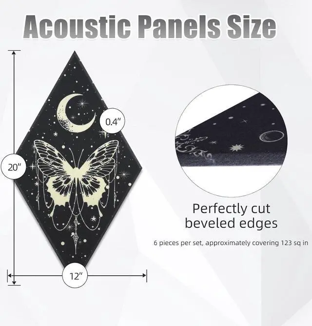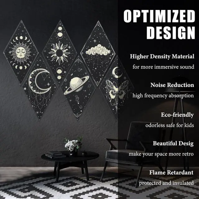 UPGRADED ACOUSTIC PANELS: what you will receive are 6 pieces of moon art wall panels, designed in 6 different patterns in the theme of sun and moon, mainly colored in black and shaped in rhombus; Be different from other acoustic panels, We have upgraded their acoustic performance and their appearance. The acoustic panels absorb unnecessary sound and play a good role in decorating the wall.