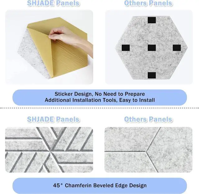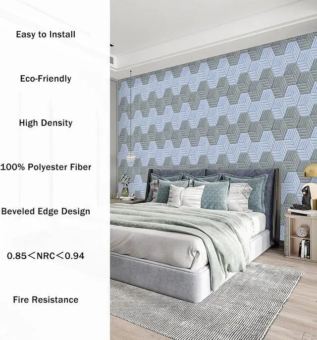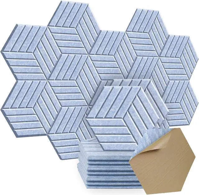 Decorate Your LifeThis stylish hexagonal sound insulation board adopts beveled edge design, you can hang this hexagonal soundproof wall panels in a variety of ways and double as a decorative wall artwork in your favorite space. Offering stylish décor without sacrificing any of their soundproofing power.