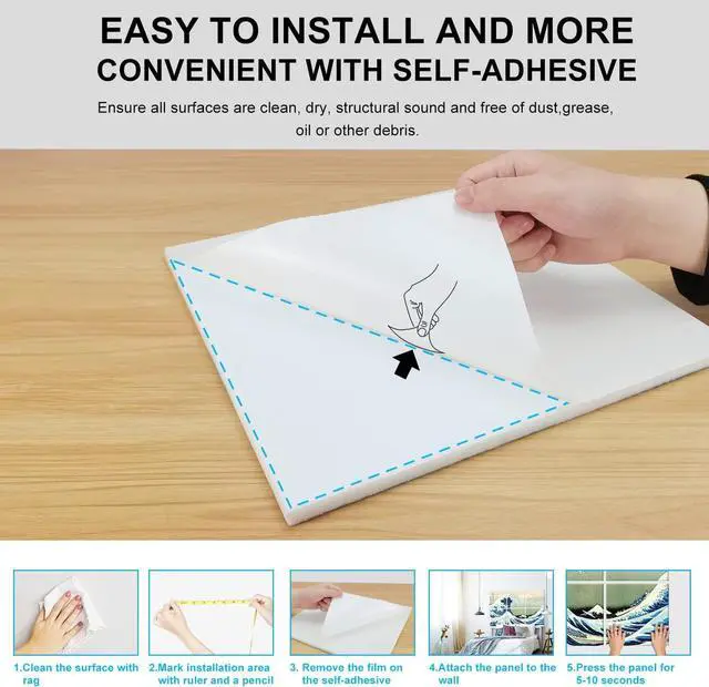 EASY TO INSTALL - Acoustic Panels with Self-Adhesive, It is easy to install, you could do it by all yourself. Art panels can be incorporated unobtrusively and are as simple to install as hanging up a painting.