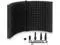Booth Benefits: The 2 folding panels of our mic shield are easily adjusted - simply angle for optimal sound insulation. Our sound shield also folds in on itself for easy storage so, if you' re short on space, your sound won' t suffer.
