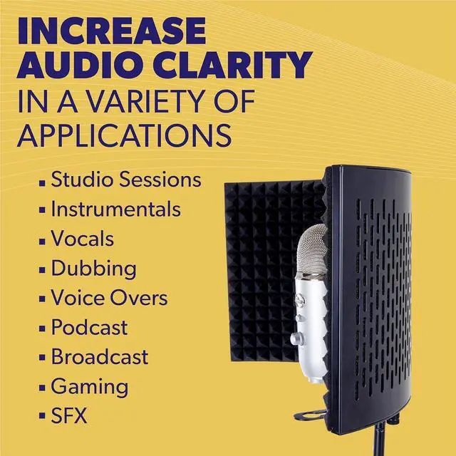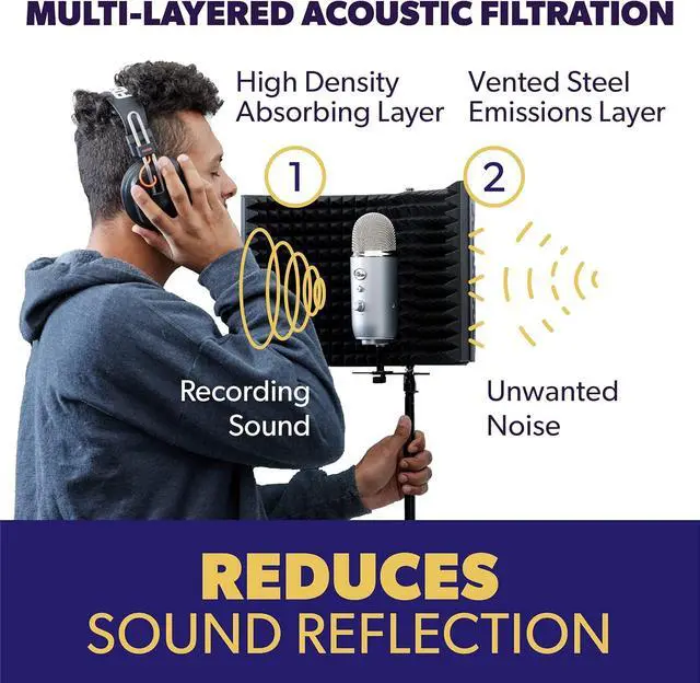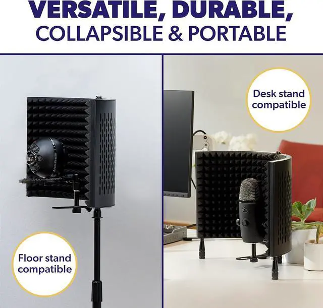Adaptable: This affordable, freestanding reflection filter is constructed with premium quality steel to ensure stability. Need elevation? It' s also compatible with most mic stands! A reliable microphone sound shield, without the financial reverb.