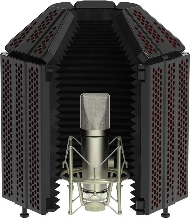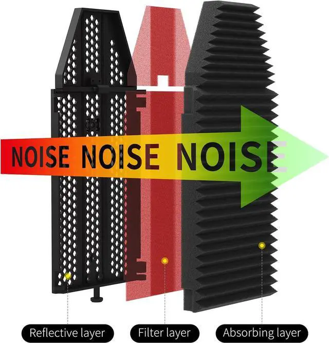 SUPERIOR NOISE REDUCTION DESIGNThis portable vocal booth is designed to maximize on blockage of all sound interpretations with its compact design. It is a full package design, with a foldable top to efficiently cancel out noise interference from the environment for a noiseless, multi-layer noise cancellation structure. It reduces noise on the back and side to ensure cleaner and clearer recordings. The reflection area and the absorption area reduce noise generated by the external environments.