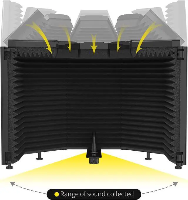 Flexibility And Convenience There is lots of flexibility working with the microphone isolation shield with a stand as you can choose to use the 3-panel design with 2 foldable end panels, 5-panel design with 4 foldable end panels. It is easy to adjust the arch design, enables angle adjustments for optimal sound insulation and meets the recording needs of the environment hence ensures only the highest quality recordings.