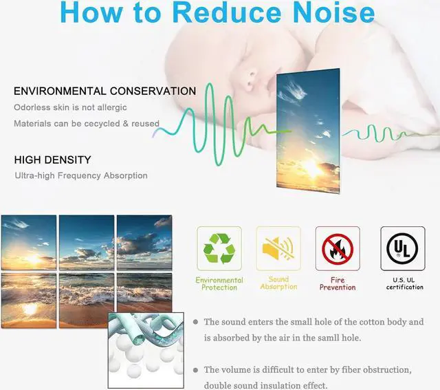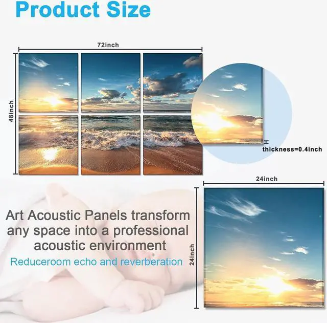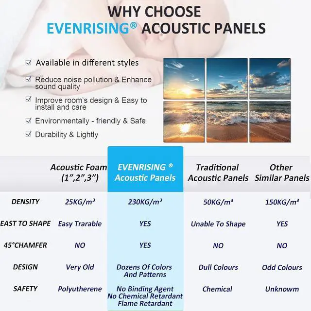 [UNIQUE DESIGN] Compared to other art acoustic panel, our art panels are safer, lighter and brighter. You don' t have to worry about uncertified products affecting your health. No harm to babyEvenrising acoustic art made of 100% recycled material, the surface is heat-treated, the texture is smooth and durable.
