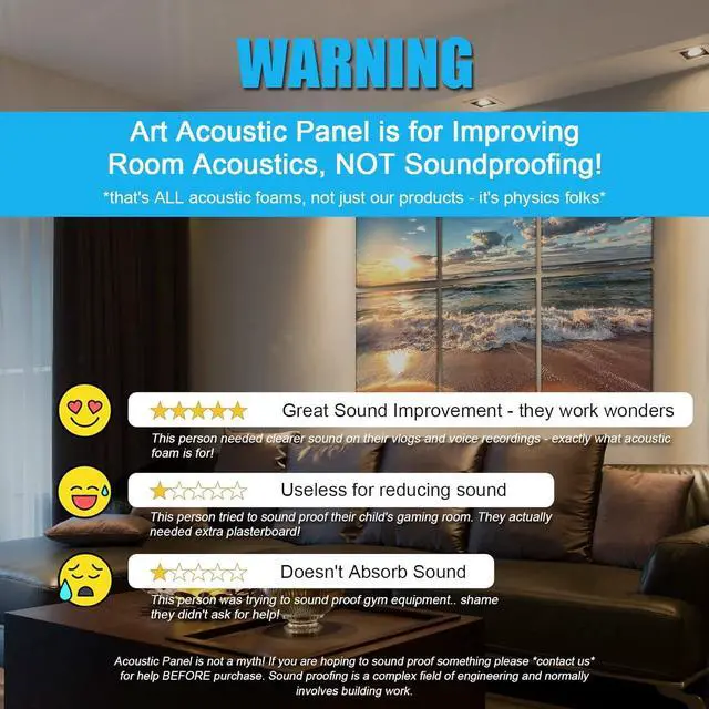 [EFFCIENT ABSORPTION] The acoustic art you' re looking for --- if you' re serious about acoustic, stay away sound proof foam panels., stay away from acoustical wall panels. NO certified! Our acoustic art panels provide excellent sound absorption, minimizing reverberation and echoes, remove sound impurities, improve sound effects, and improve language clarity. It is very suitable for places with higher requirements on acoustics.