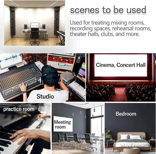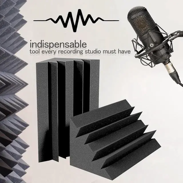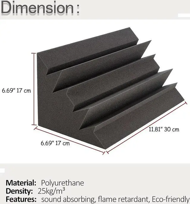 Our bass traps corner studio foam are made of high-density polyurethane which is aimed to absorb the low/mid frequencies sound wave, improve acoustical quality. These porous absorbers are the first line of defense when tackling general problems with room acoustics.