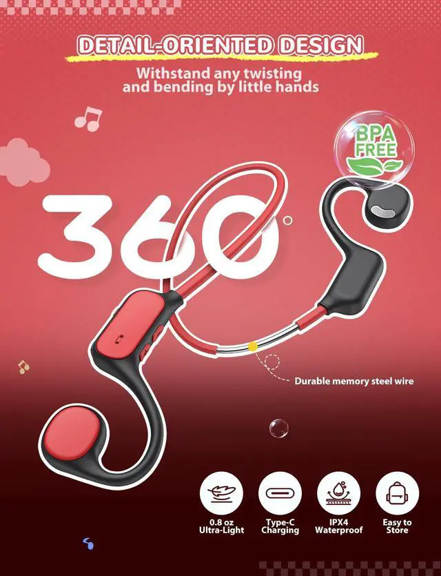 iClever Kids Headphones, Bluetooth 5.4 Air Conduction Open Ear Headphones, Safe Volume 74&85 dBA, Clear Audio, 360° Bending, Ultra-Light Comfortable Kids Bluetooth Headphones for iPad/Outdoor/Sports