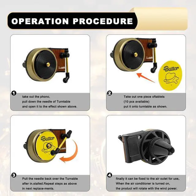 This record player car air fresheners not only becomes a unique decoration in your car, but also provides a long-lasting fresh scent, help you relax and feel more refreshed while driving.