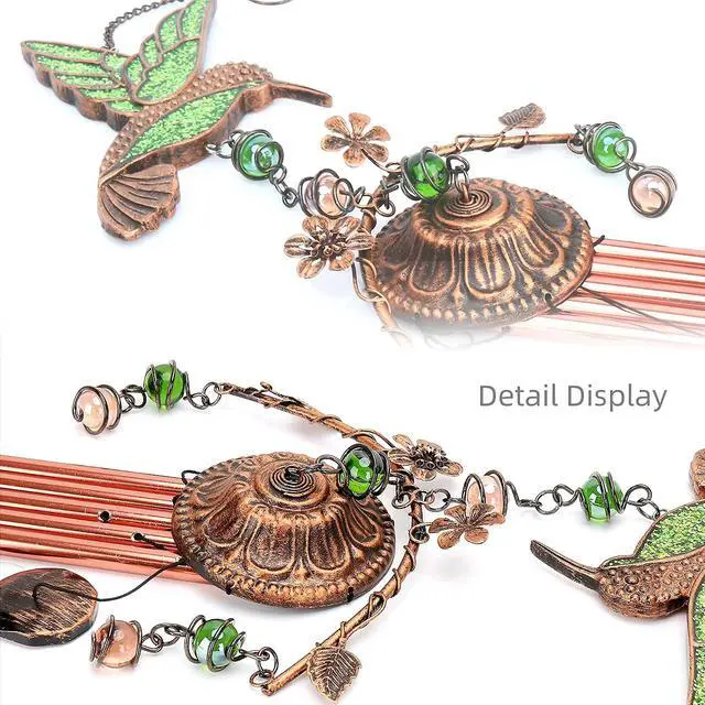 Our exquisite hummingbird wind chime features a beautiful hummingbird at the top covered in eye-catching green glitter, adding a touch of elegance to any space. Below the hummingbird is a natural element design with glass beads, creating a natural and delicate look that resembles a piece of jewelry.