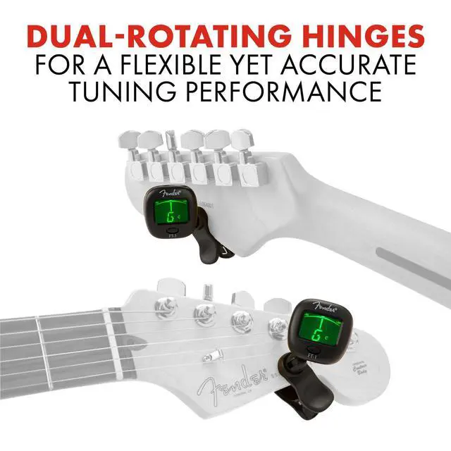 Batteries Included - This full-range chromatic guitar tuner includes CR2032 battery so that you can enjoy the convenient, unobtrusive help of this Fender clip on guitar tuner
