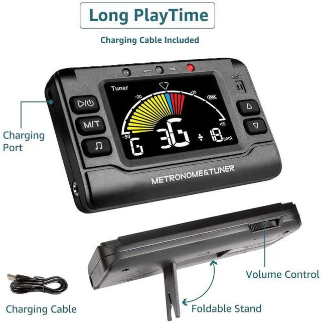 From quiet late nights to bright stage lights, this little device keeps you tuned, on time, and ready to play — with USB charging, a clear color screen, and a sound that feels like home.