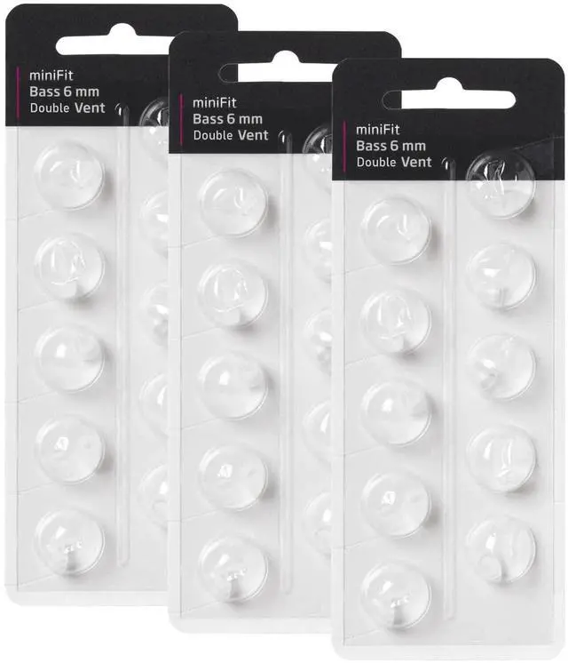 Our Oticon MiniFit bass 6mm double vent domes comes with 3 pack per order, which equals out to a total of 30 domes each pack comes with 10 domes to use from.