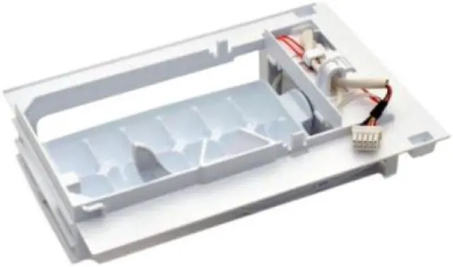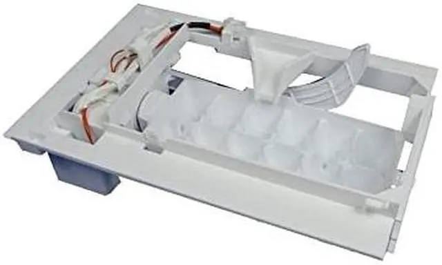 OEM AEQ72909602 Lower Ice Maker Assembly for LG Refrigerator produces and dispenses ice within the appliance. It can be placed in the freezer section, and is connected to the internal water supply line of the unit. This assembly allows smooth connection with the internal structure of the appliance, which fits with the existing connections to maintain the correct functionality and location without changing the overall shape of the refrigerator.