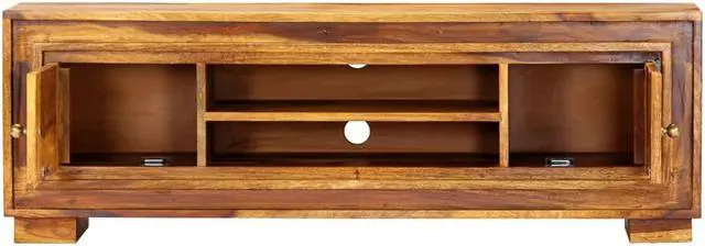 This Mid-Century Modern TV cabinet is a stylish pick for any living area, adding a bit of class and functionality to your home. Made from solid Acacia wood, its rich brown finish boosts its appeal while making it tough enough for daily use.