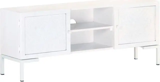 This wooden TV cabinet adds an industrial charm and makes it a perfect choice for your interior living space. The stereo cabinet is made of solid mango wood, a tropical hardwood with the strength to bear the weight. It also stands the wear and tear of time, making it stable and durable. The powder-coated steel frame also provides extra stability. The media unit also features 2 shelves and 2 doors providing ample space for storing your multimedia appliances, books as well as various other items.
