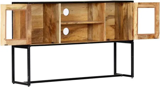 This sideboard is fully handmade and the delicate wood grains make every piece of furniture distinctive and slightly different from each other. This TV stand features 2 doors and 2 open compartments, providing commodious space for storing your multimedia appliances, books, as well as various other items. The HiFi cabinet is already assembled; no assembly is required.