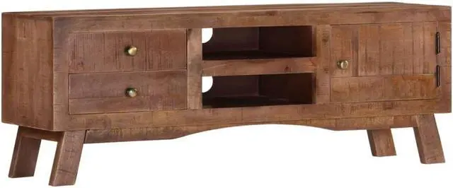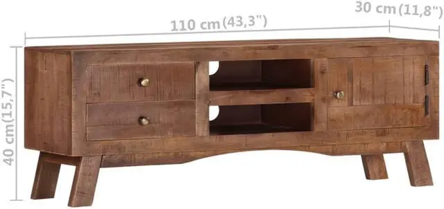 This classic wooden TV cabinet, equipped with 1 compartment with a door, 2 shelves and 2 drawers for various items, is definitely a practical and eye-catching addition to your home. The hifi cabinet is made of rough mango wood, a tropical hardwood with the strength to bear the weight. It also stands the wear and tear of time, making it stable and durable. The craftsmanship and the beautiful wood grains make every piece of furniture unique and slightly different from the next.
