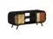 This industrial-style wooden TV cabinet exudes a vintage charm and makes a timeless addition to your home. The TV stand is handmade from solid reclaimed wood, a combination of reclaimed timbers including teak, mango wood, pinewood, beech, etc. These woods are recycled from old buildings such as factories, sheds and boats. This makes it a fantastic environmentally friendly option in furniture making. As every piece is handmade, colors vary with many blues, greens, creams and sometimes oranges, reds and pinks shades revealed. This even means each one is unique! Additionally, the side cabinet provides ample space for storing multimedia devices, media carriers, and any other items.