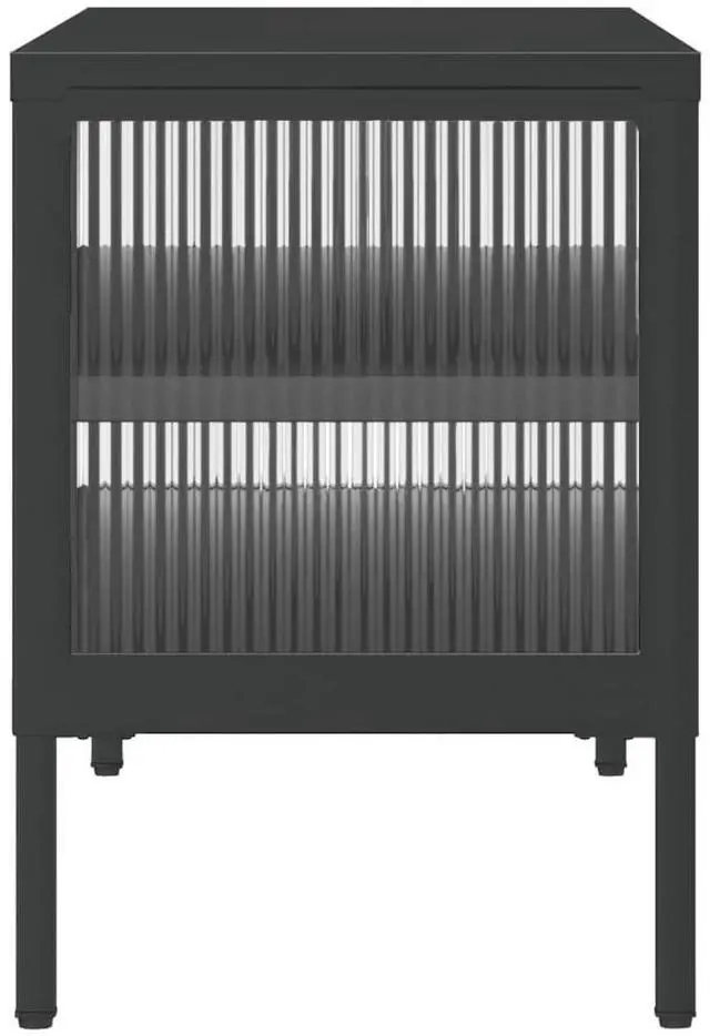 This modern black TV cabinet mixes style and function, providing an elegant spot for your media gear while being a focal point in your living room. Its sleek powder-coated steel body and fab fluted glass doors not only organize your essentials, but also enhance the look of your space, making it a brilliant match for contemporary decor.