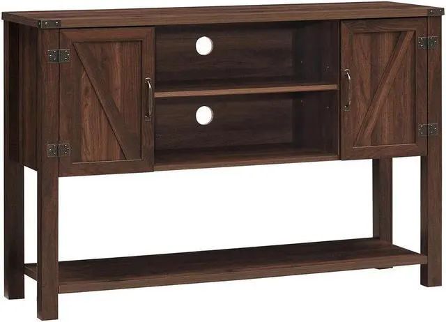 The well-organized console buffet table is stylish and versatile to offer you much additional storage space in the kitchen or dining room. With large table top, 2 cabinets on the each side, 2-layer middle shelf and bottom open shelf that provided with ample storage space, you can place your items in order. It is crafted with high quality engineered wood that sturdy and solid for long time use. Moreover, simple lines and elegant style also make it a TV stand look, which helps it fit other furniture and decors in your living room, bedroom or somewhere else. Enjoy your happy and relax time with this entertainment center!