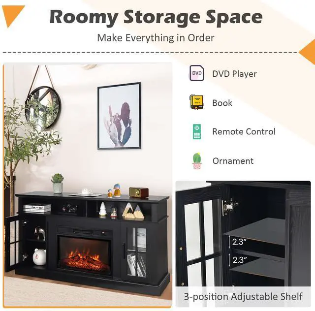 This fireplace TV stand not only satisfies your daily storage demands, but also keeps your warm throughout the winter.