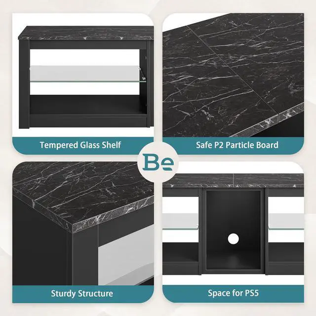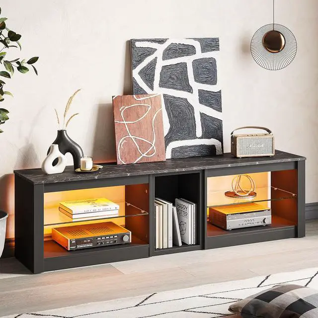Spacious Storage: The cabinet has 5 open shelves with adjustable tempered glass, providing ample space for CDs, DVDs, games, books, and video components.