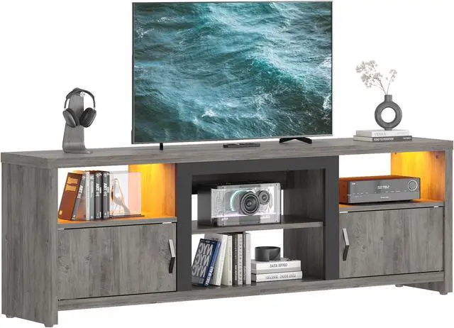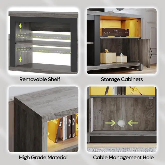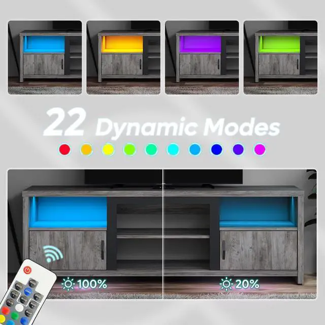 Adjustable LED Lights: The TV stand features 7 main colors and 22 dynamic modes LED lights system, adding elegance to any room.