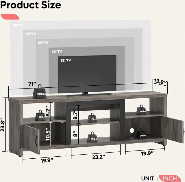High Quality: Made of CARP P2 board, the TV stand is scratch-resistant, waterproof, and stable. Its wash grey finish suits various home decor styles.