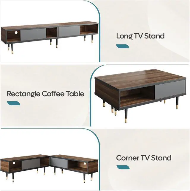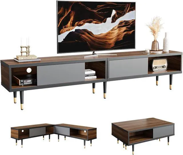 Various installation methods80 inch long TV stand cabinet, 40-inch coffee table, that can be placed in the corner can be switched freely according to needs.