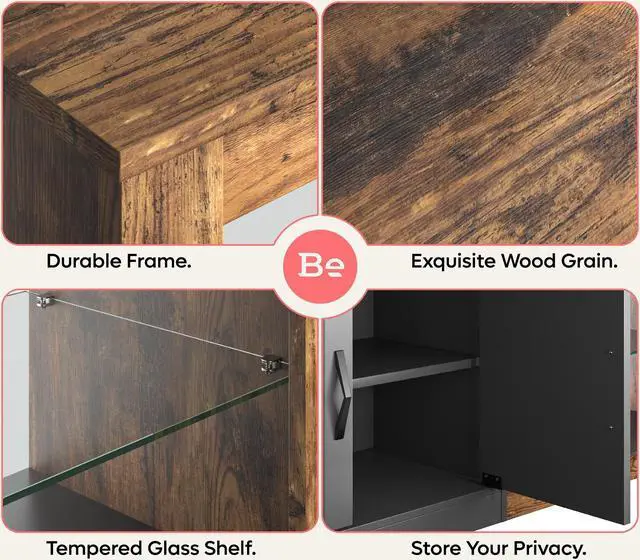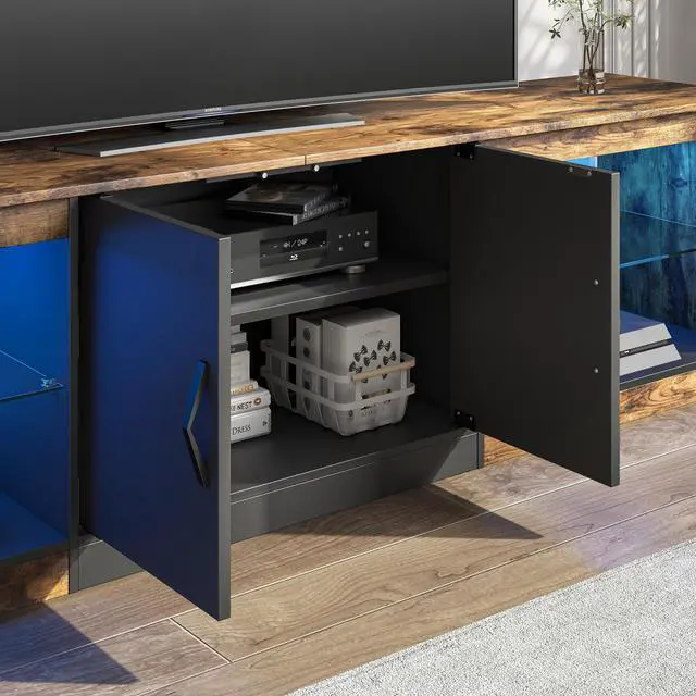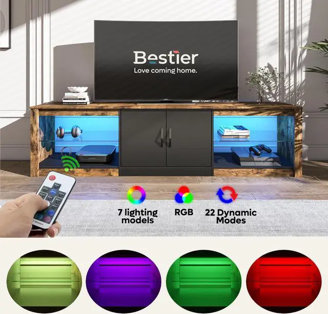 ?RGB Lighting & 22 Dynamic Modes?The Bestier TV console provides an excellent & immersive viewing or video game experience. The included remote control allows you to choose and customize your atmosphere according to your mood and scene in 7 main colors and 20 display modes, such as exciting games and scary movies. ?Spacious Storage and Tempered Glass Shelves?This television entertainment stand features 4 open shelving areas separated by tempered glass to hold your display items such as headphones, DVDs, gaming devices or photo frames. The closed storage cabinet can be used to store your personal items.