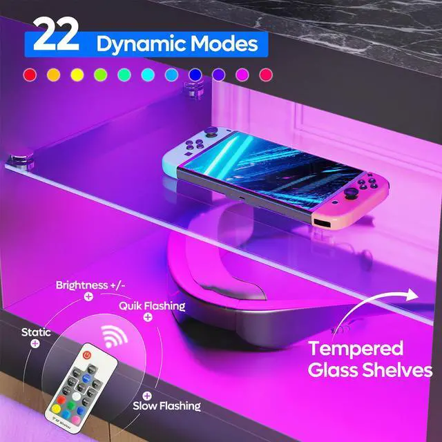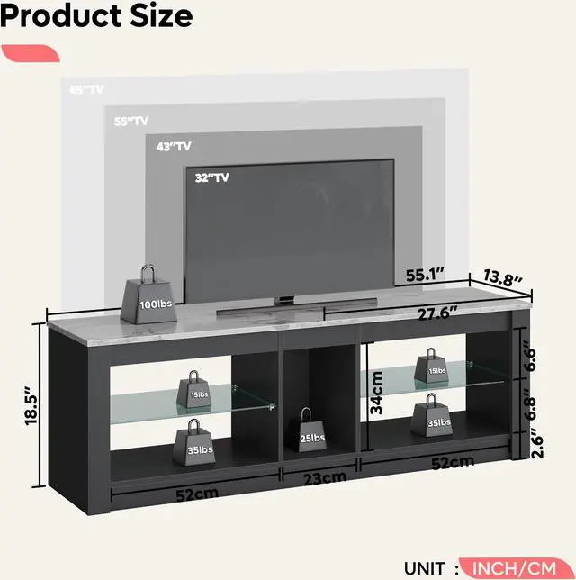 Features RGB-LED Lights -This 55 inch media console table has LED light with 7 main colors and 20 display modes. You can change colors by remote control, provide a colorful atmosphere for your room and living room