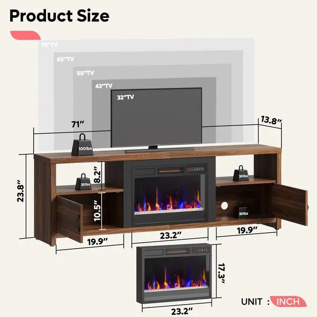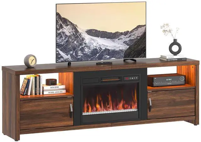 Create a cozy and modern entertainment hub with the Bestier 70" TV Stand featuring a built-in electric fireplace and dynamic LED lighting. Designed for both function and style, this console effortlessly combines home comfort with a contemporary look, ideal for living rooms, bedrooms, or game rooms.