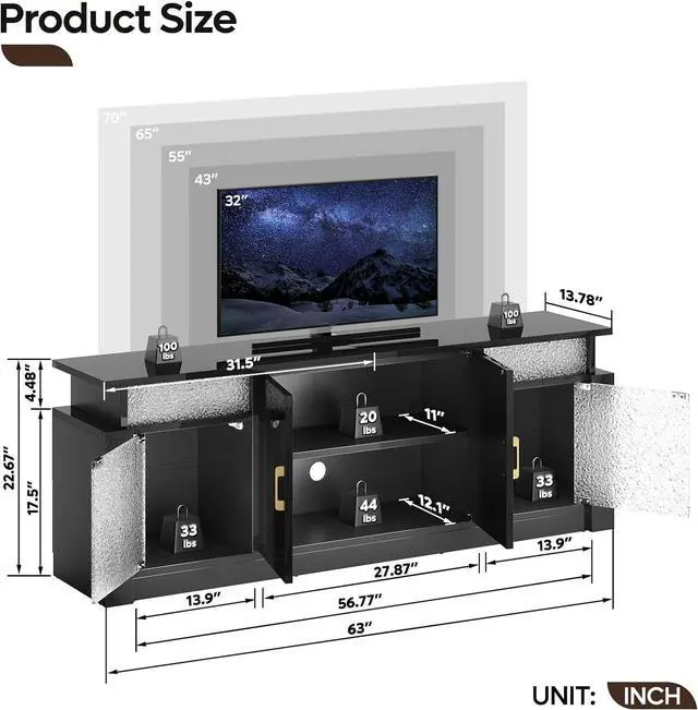 Built to accommodate TVs up to 70 inches, this stand features fully enclosed storage with two side cabinets and a double-door center compartment, helping keep your space clean and clutter-free. The adjustable center shelf offers four height options, giving you flexible storage for media players, game consoles, and more.