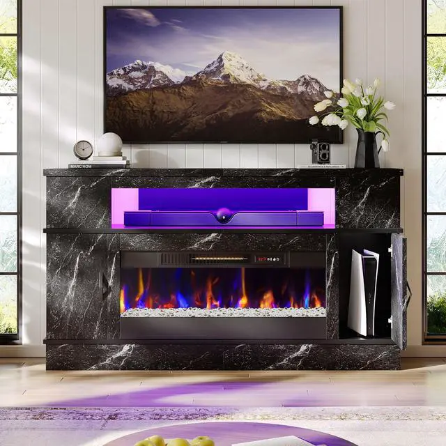 Enjoy immersive ambiance with dual lighting: a top gradient LED strip offers 18 color modes, while the integrated 36" electric fireplace features 7 flame colors, 5 speeds, and 5 brightness levelsall easily managed via a single remote. The powerful 1500W heater efficiently warms rooms up to 1000 sq. ft., with an adjustable thermostat ranging from 62°F to 92°F.