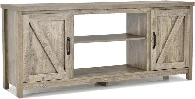 Sturdy Frame and Humanized Design: Thanks to the durable material and well-structured design, this TV console stand is a great option for exceptional durability and stability. Moreover, reinforced legs with anti-scratch foot pads increase overall stability. And 2 metal handles are convenient for you to open the door.